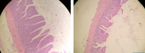 Left: Normal jejunum appearance showed in batch T3 (preservative as preventive)