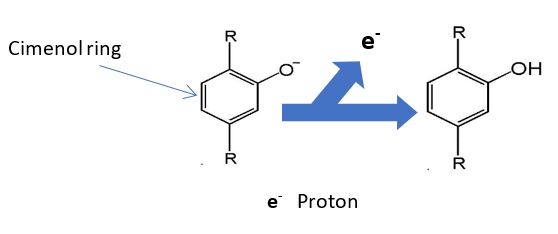 1. Cimenol ring is more reactive than nutrients in peroxidation process, so that it is oxidized in their place in presence of free radicals.