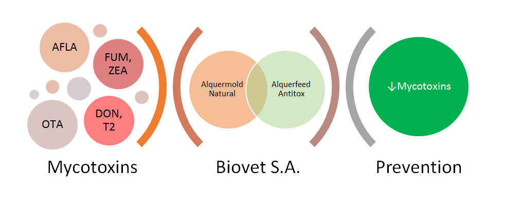 For this, Biovet S.A. developed a dual strategy that consists in the application of two products for a full protection against mycotoxins: Alquermold Natural and Alquerfeed Antitox.